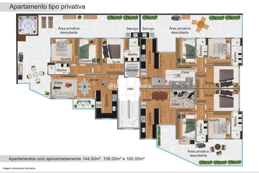 Apartamento COBERTURA, composto por 3 quartos, sendo 1 suíte, sala de estar e jantar integradas, banheiro social, área de serviço e 2 vagas de garagem. O prédio conta com elevador, garantindo mais conforto e acessibilidade.